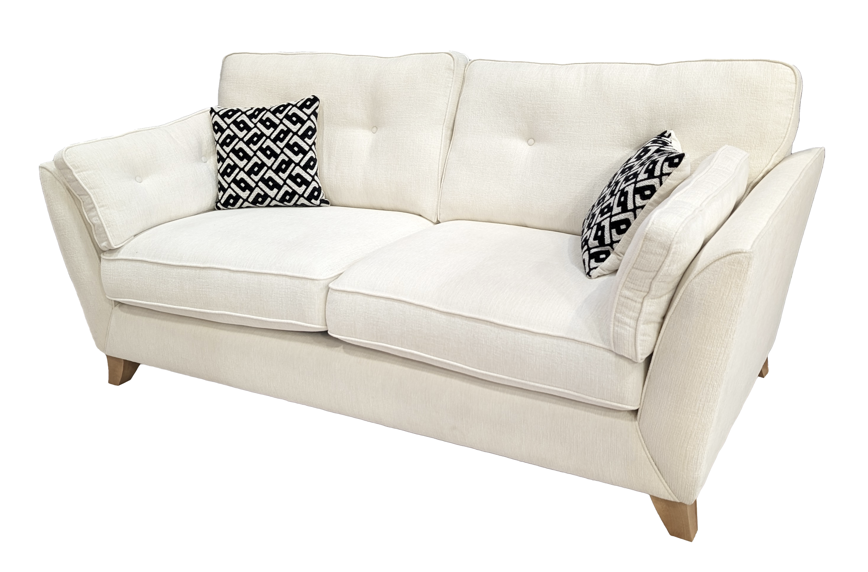 A wonderful contemporary design with soft clean lines in a luxurious fabric, it's complimented by a range of beautiful textured accent cushions. This deep all enveloping model sits on turned tapering wooden legs which add to its sophistication. The mid-century design influence makes this a design classic.
