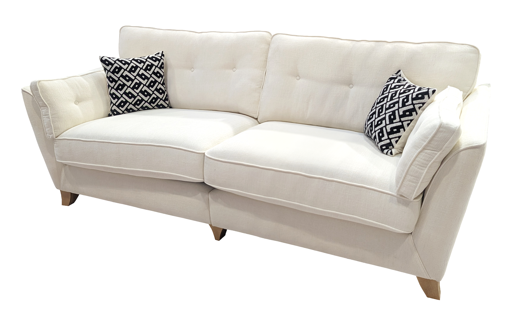 A wonderful contemporary design with soft clean lines in a luxurious fabric, it's complimented by a range of beautiful textured accent cushions. This deep all enveloping model sits on turned tapering wooden legs which add to its sophistication. The mid-century design influence makes this a design classic.
