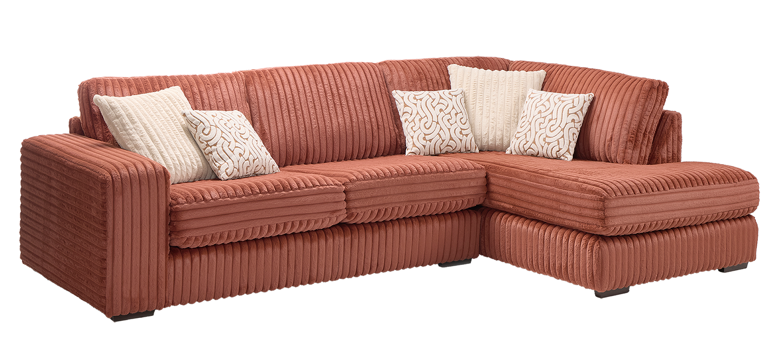 Layton is a contemporary design made for you to relax into, it’s soft cosy seats and backs offer comfort and gentle support, the generous proportions allows room to lie back and put your feet up. The Layton’s on-trend design is set off by the beautiful soft high piled sculptured cord fabric which is complimented by contrasting coloured large scatter cushions, and modern pattern on the smaller cushions which all add up to a striking statement in any style of home.